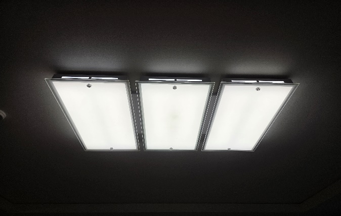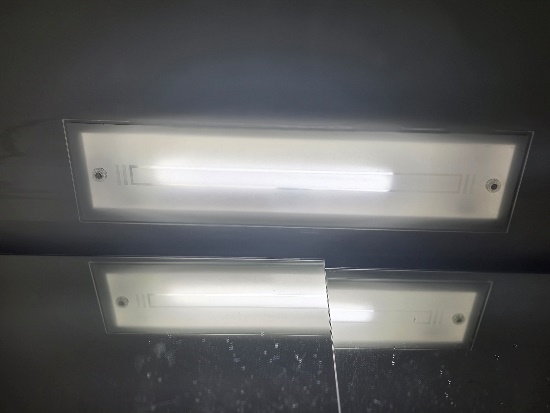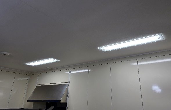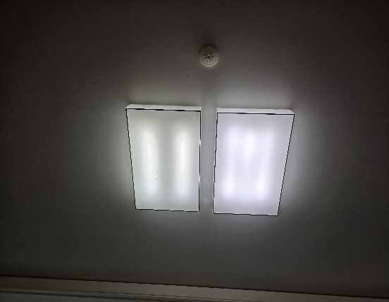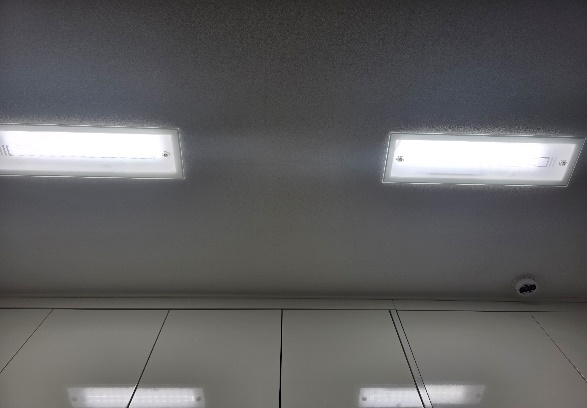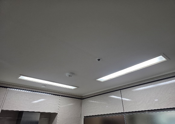 기존 조명은 형광등사용으로 인해 공간이 다소 어둡고 보이며, 조명 구조상 일부 영역에 음영이 생기는 문제가 있었습니다.