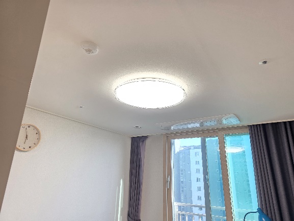 침실의 전구색 조명을 5700K 주광색 LED로 리폼해깔끔하고 청량한 분위기로